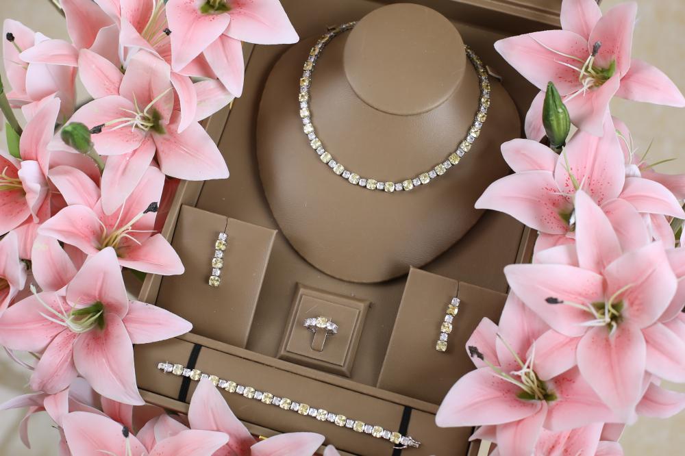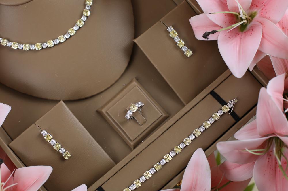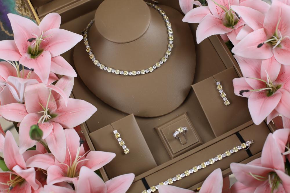يمكنك الآن اختيار هذا الطقم كخيار أنيق بديلاً للألماس، مما يعطيك إطلالة فاخرة ومبهره بأقل تكلفة.